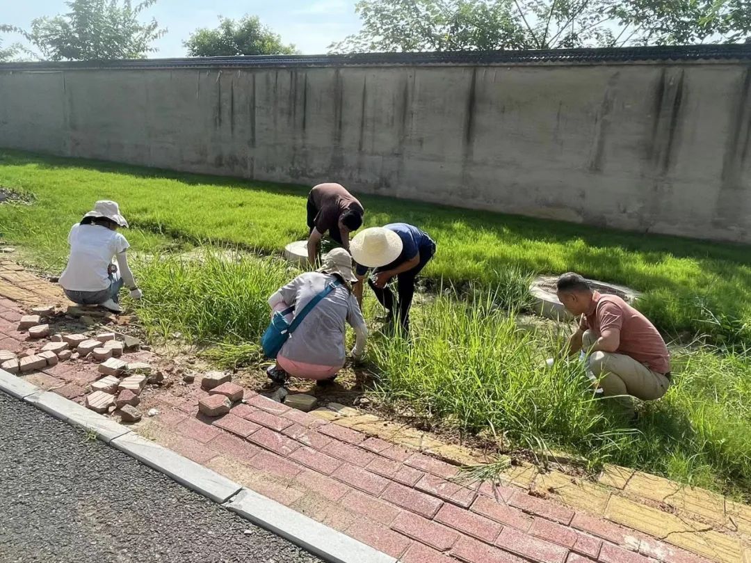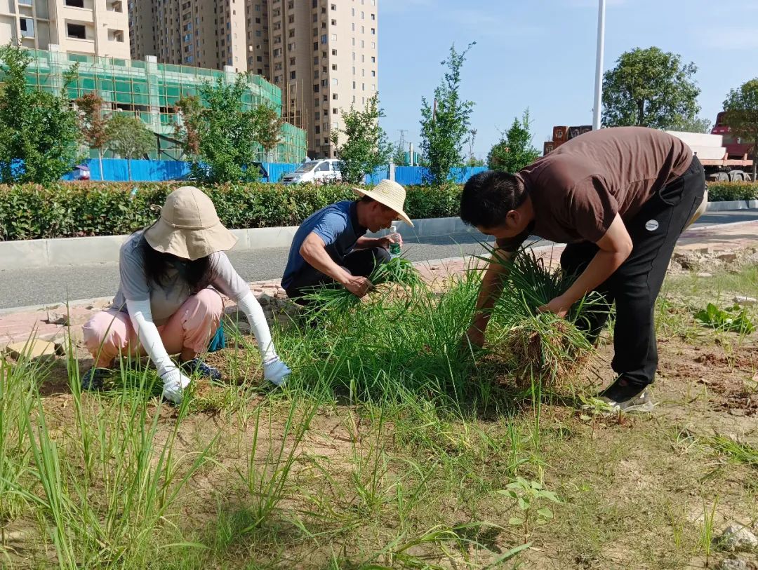 当天上午,中心干部职工和30余名代理机构志愿者到达指定地点,依次领取除草工具,弯下身子按照既定路线,迅速投入到除草工作中。劳动中大家分工合作,干劲十足,有的用手拔草连根拔起,有的用耙子将草和垃圾堆到一起,有的负责将堆起来的杂草、垃圾装到垃圾袋上,大家忙得不亦乐乎。路边花坛杂草丛生,土地高低不平,部分土地中还有许多大小不一的硬土块,为除草工作带来不小困难。尽管天气炎热,汗流浃背,但大家凭借顽强的毅力,依旧坚持不懈将除草工作顺利完成。