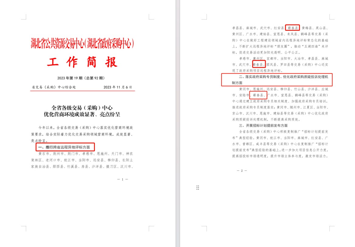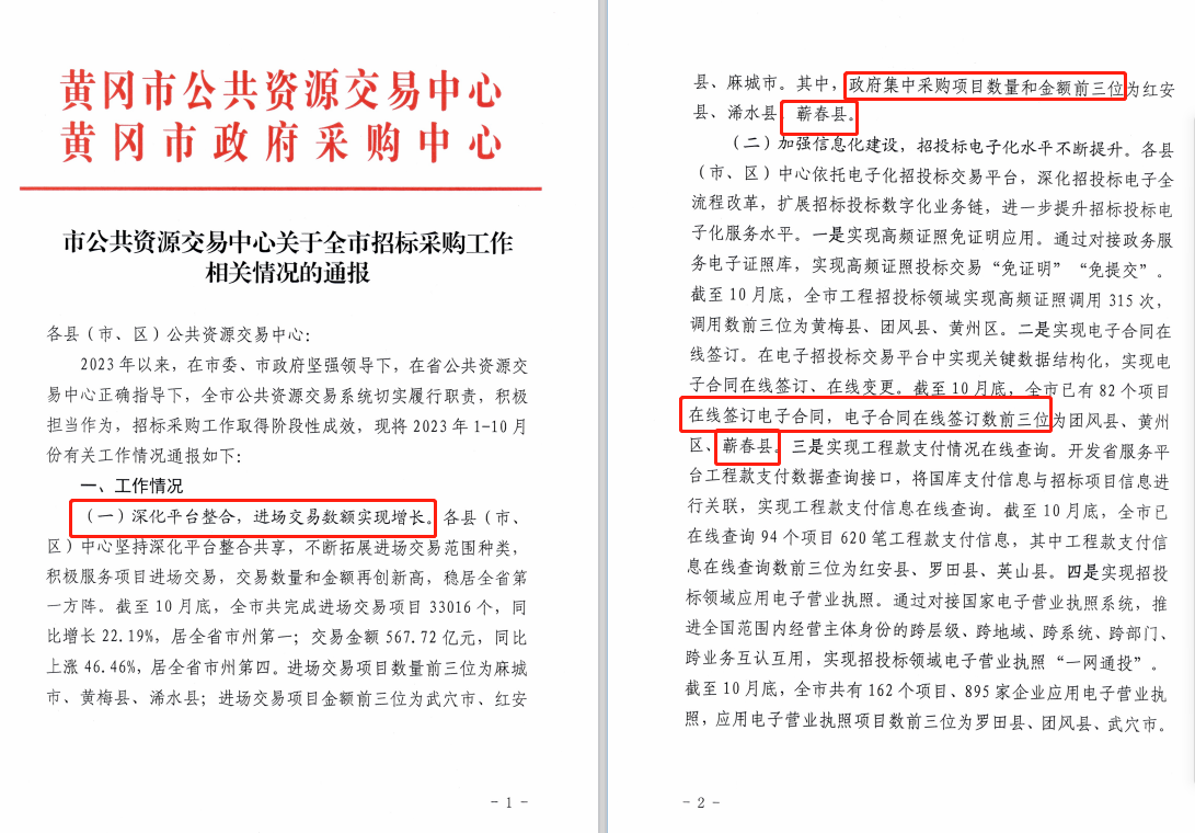 喜报频传获佳绩,奋楫扬帆正当时。2023年,蕲春县公共资源交易中心立足招标采购服务平台职能,改革创新,担当作为,奋勇争先,各项工作都取得良好成效,硕果累累,成绩非凡。